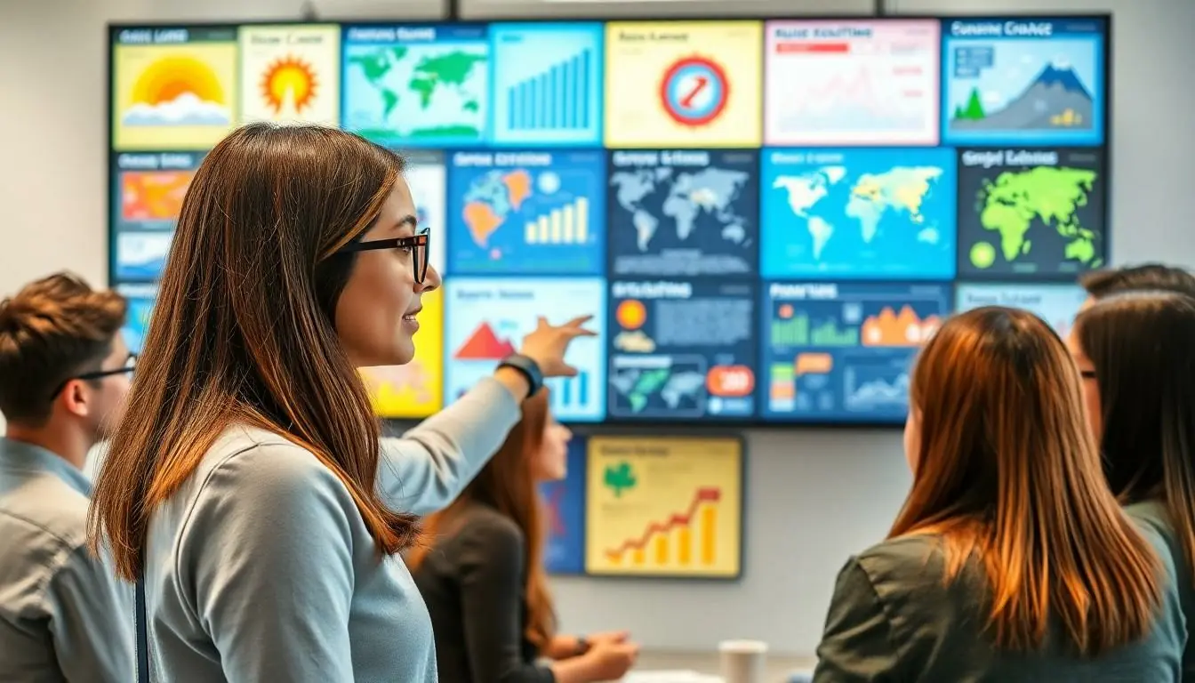Infographics condense large amounts of information into digestible formats. Presenting statistics like 1.2 million species at risk underscores the severity of climate change. Visual tools enhance retention, allowing audiences to remember key messages more effectively. Charts demonstrate trends, and graphs visualize changes, making connections clear. Instructions on potential solutions show renewable energy’s advantages, guiding informed decision-making. Overall, infographics serve as effective communication tools in conveying vital climate information.